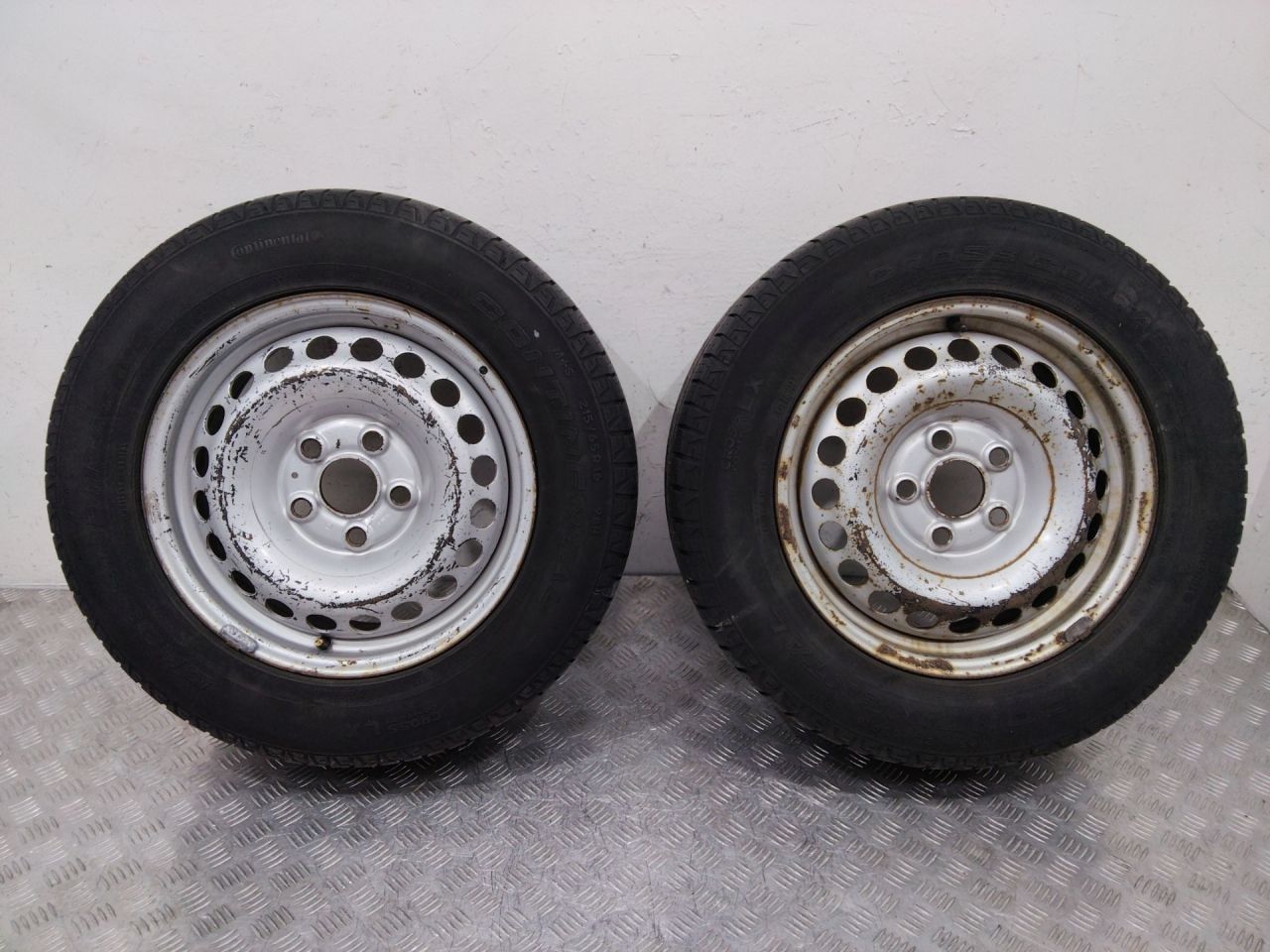 Пара колес R16x6.5 5x120 (Continental 215/65) R16, ширина обода: 6.5, PCD 5x120 мм, ET 51 мм. Шины: легковые, всесезонные, 2015, остаточная высота: 3.5мм. Volkswagen Transporter T5 рест. 2010