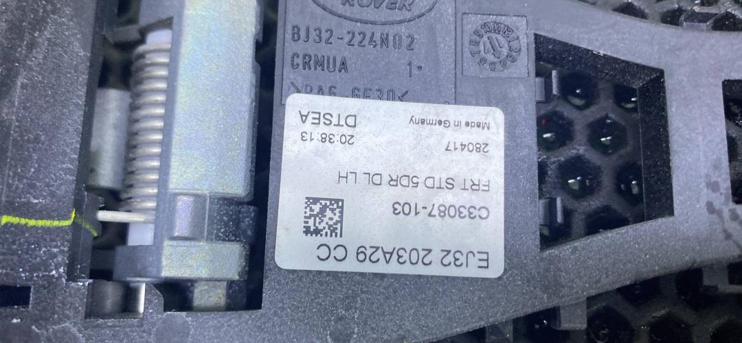 Замок передней левой двери для Range Rover Evoque рестайлинг 2015-2018г. 2.0 DSL MiD Dohc AJ200 204DTD. С кронштейном ручки: EJ32203A29CC Артикул: EJ3A21813CC.